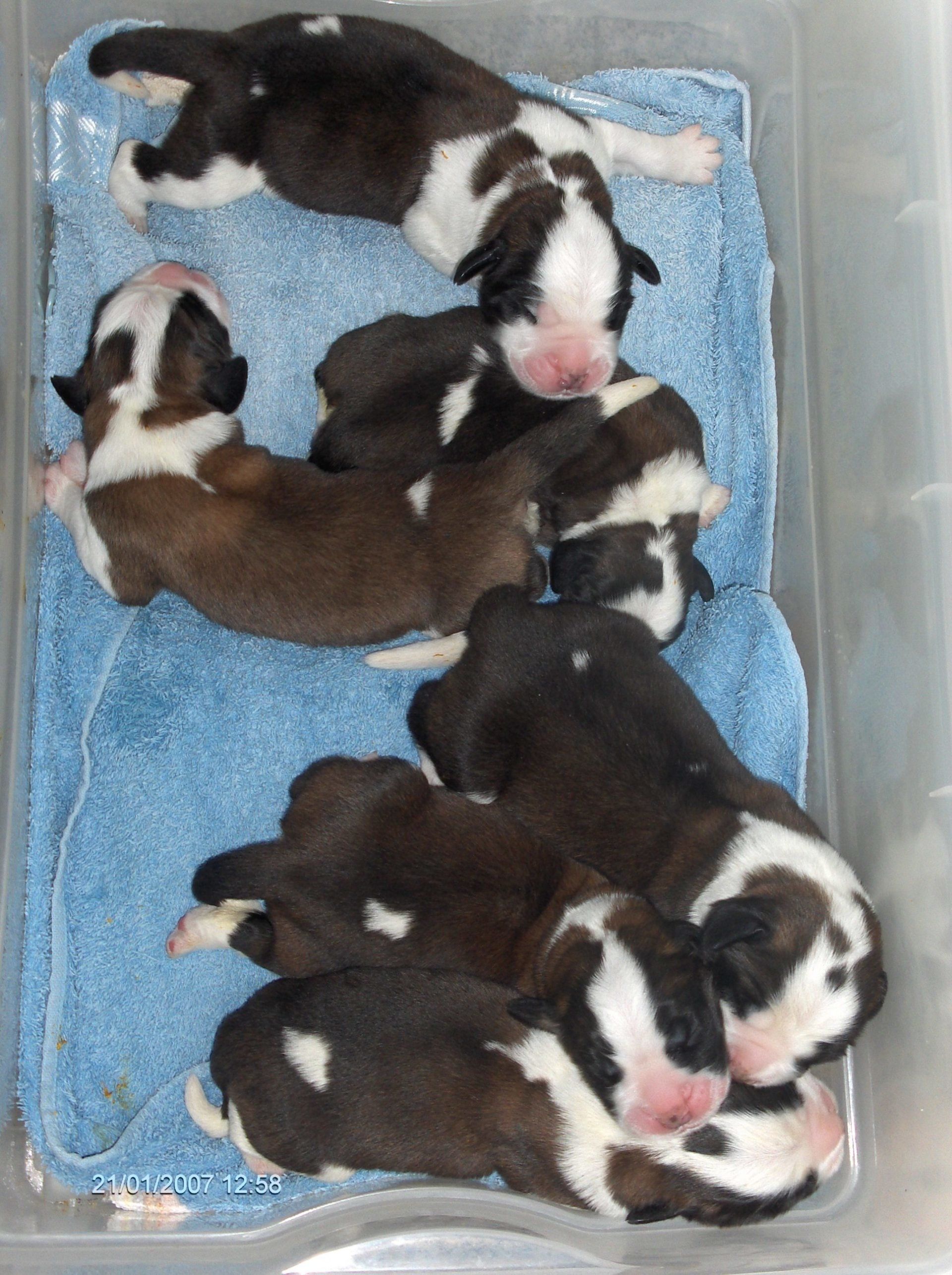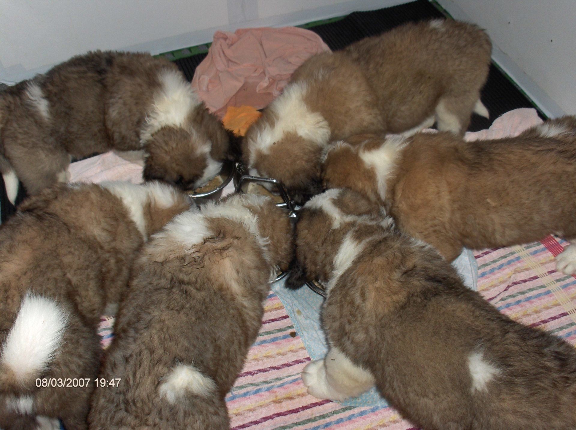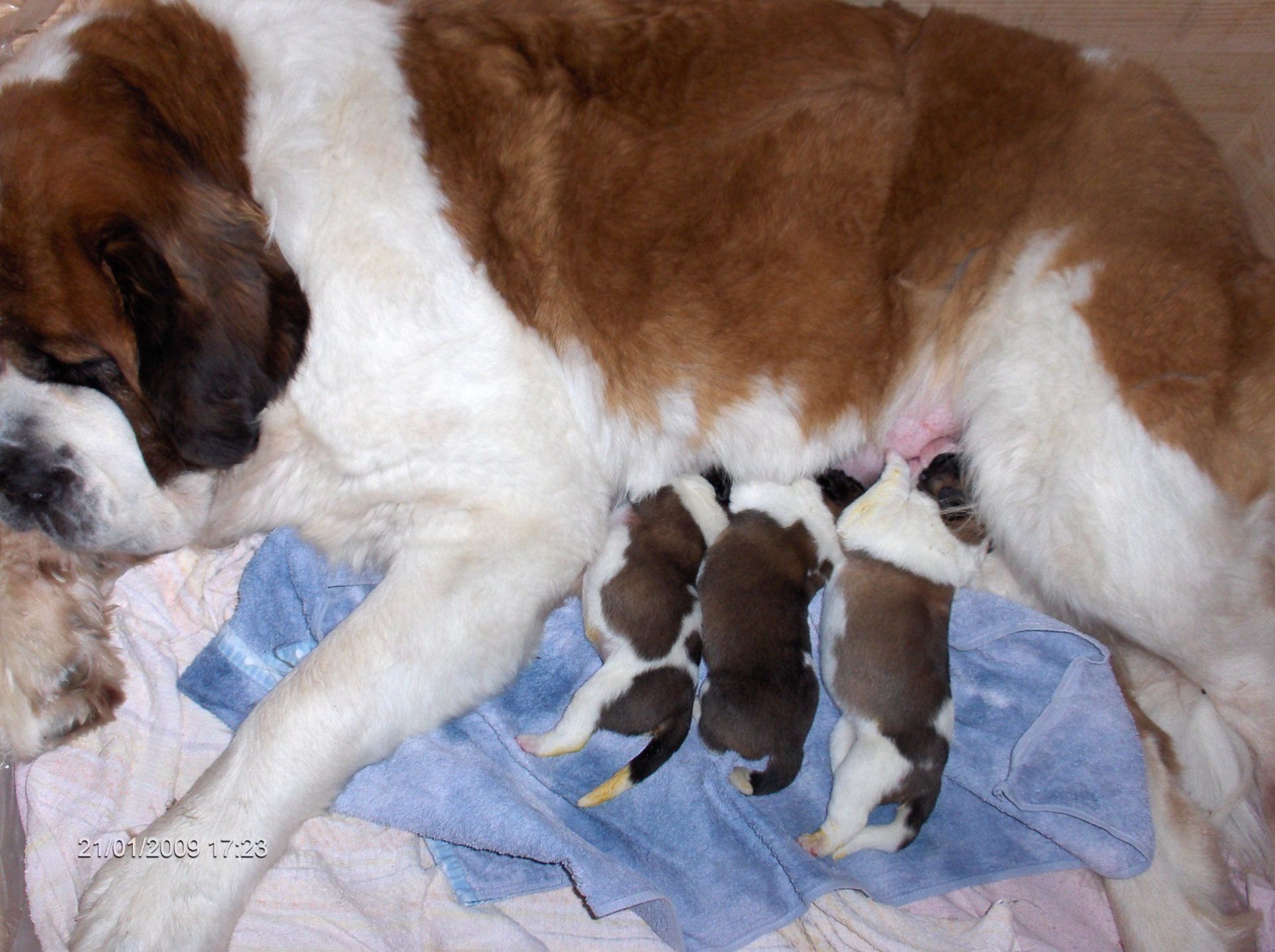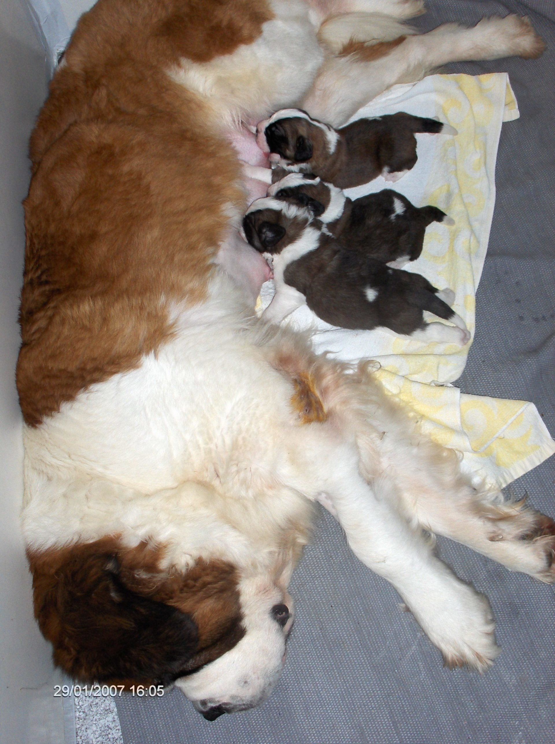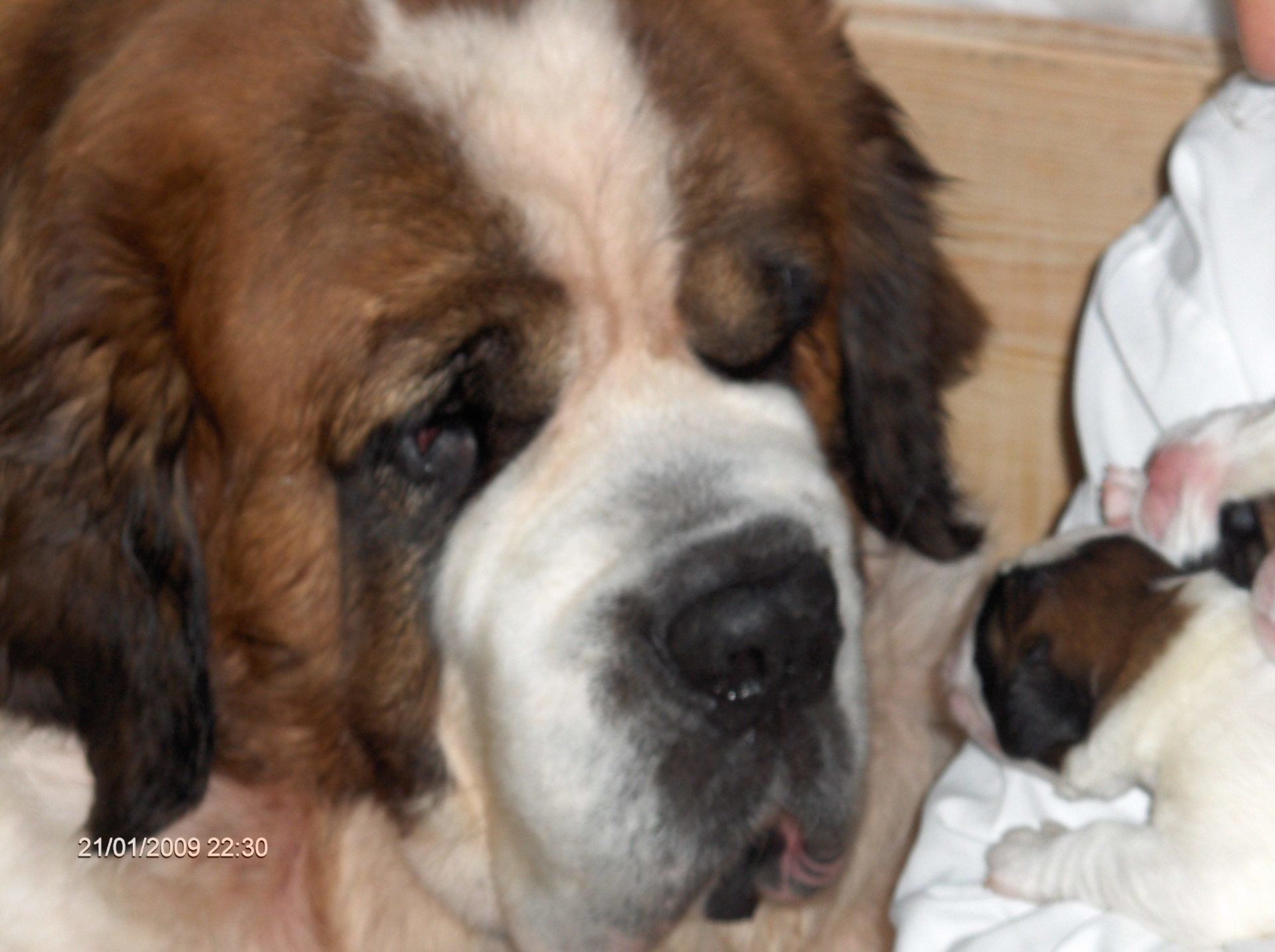 A nossa experiência anterior foi com o "Cão de São Bernardo". Verifiquem, por favor, uma sequência de imagens, para ajudar a imaginar um processo de um preparativo para um parto, incluindo uma foto de uma incubadora, após cesariana, o regresso a casa, a amamentação, os suplementos de leite e de "papa", o acompanhamento diário, 24h, a fase de socializarem... até ao momento "das lágimas" da despedida...